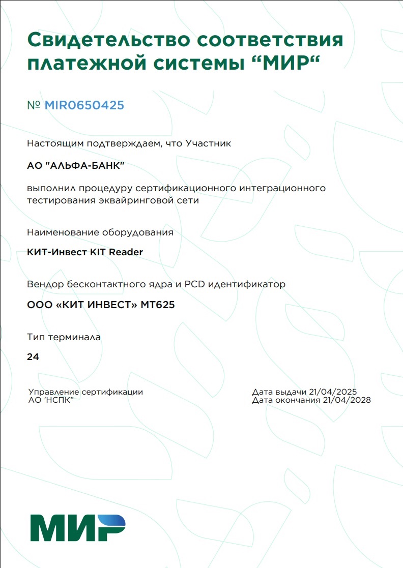 Наши аппаратные и программные решения прошли все необходимые процедуры сертификации и полностью соответствуют требованиями российского законодательства, а также всем современным стандартам платежной индустрии.